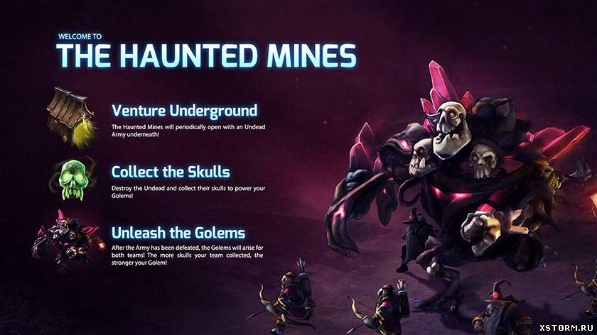 - после полной зачистки шахты, начинается призыв покоренного Могильного голема у каждой стороны. Причем сила его будет зависеть от количества собранных вашей командой черепов.